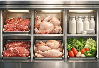 Et, tavuk, sebze ve süt ürünleri ayrı alanlarda ve uygun koşullarda ve ayrı konumlarda muhafaza edilir. Böylece çapraz bulaşma riski tamamen önlenir.