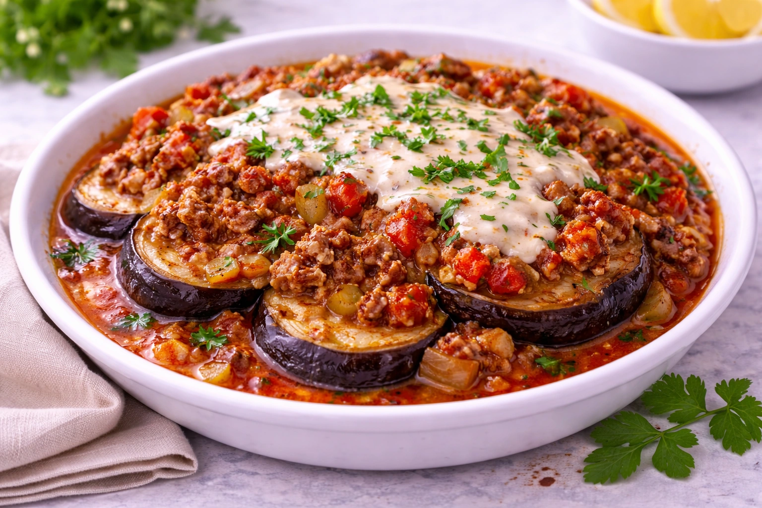Doyurucu yapısı, dengeli aroması ve klasik tadıyla patlıcan musakka; hem günlük öğünlerde hem de büyük organizasyonlarda ana yemek olarak sıklıkla tercih edilir.